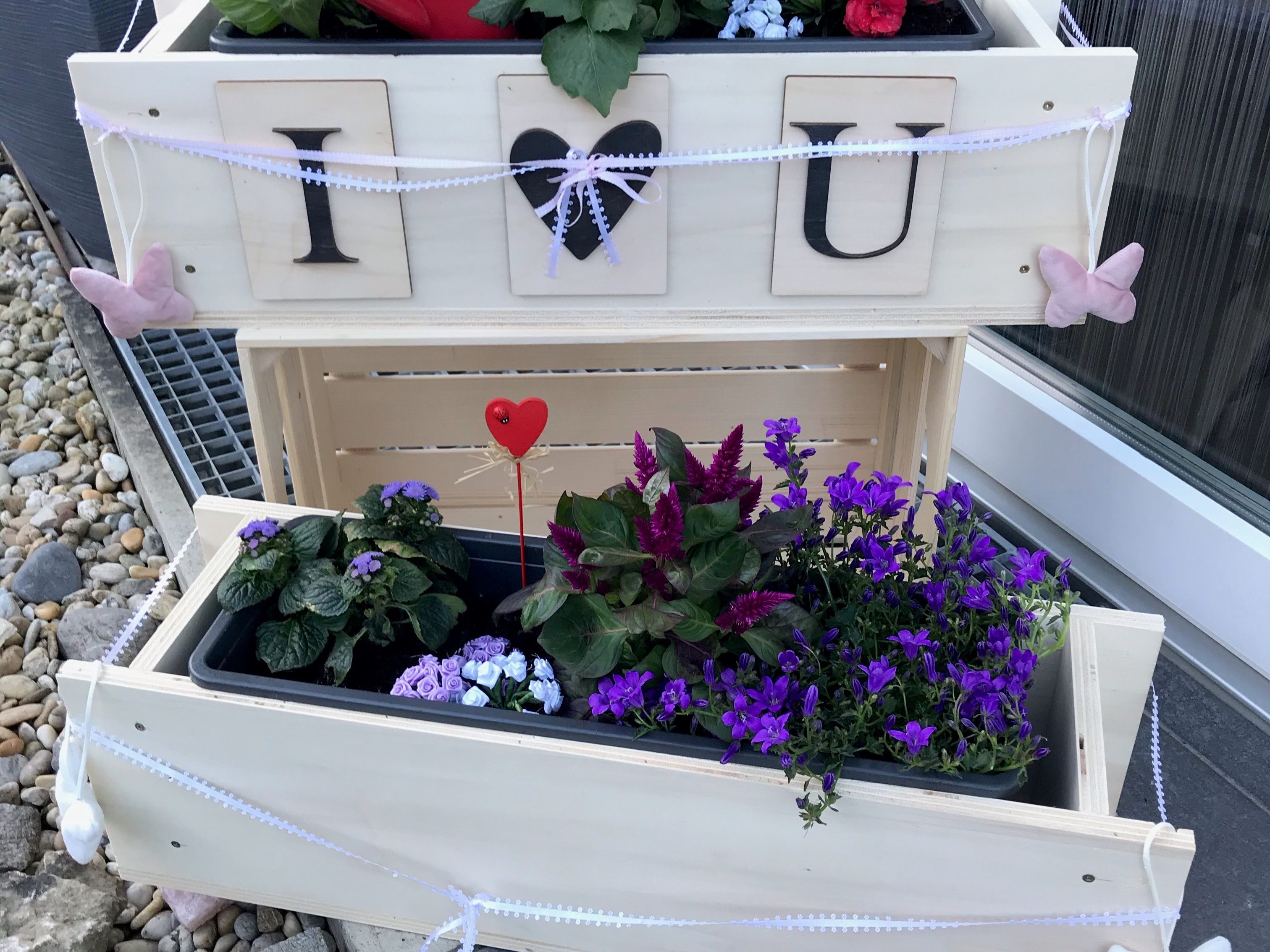 Anschließend wurden die Kisten mit Erde oder Blumen gefüllt und der Mama am Muttertag als Geschenk überreicht. Die Mamas freuten sich riesig über die Überraschung und haben nun ein schönes Andenken an den diesjährigen Muttertag.