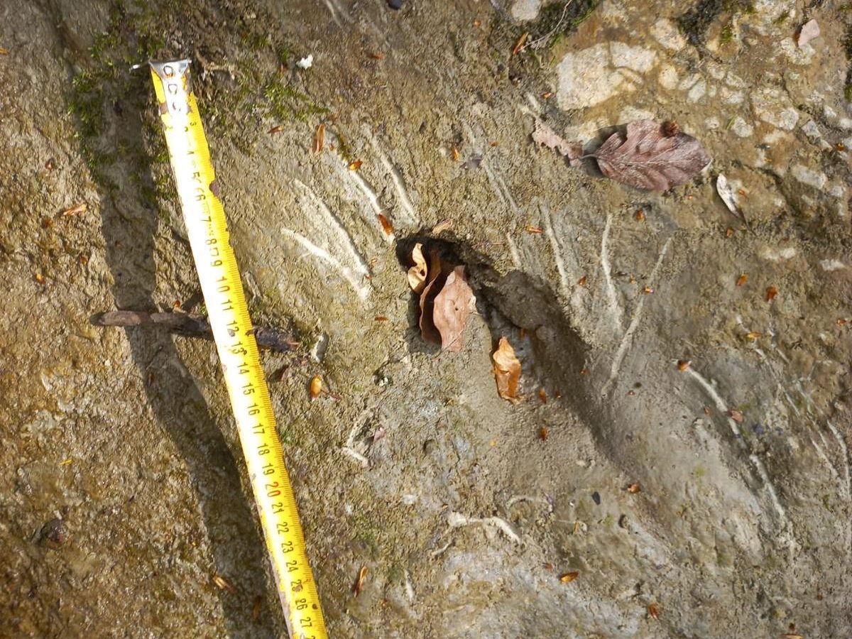 Mehrere Fotos dokumentieren auffällige Schleif- und Kratzspuren auf verschiedenen Felsflächen. Einige der Spuren wirken auf den ersten Blick wie Krallenabdrücke, in einem Fall ist sogar eine Vertiefung zu erkennen, die entfernt an einen Tatzenabdruck erinnert. VOL.AT spricht mit einer Expertin, um die Spuren fachlich einzuordnen.