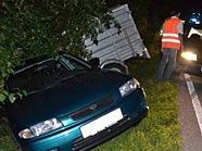 “Gespann” von einem Baum abgefangen, da es sonst in die Pitten gestürzt wäre. Der Autofahrer kam mit dem Schrecken und ohne Verletzungen davon.