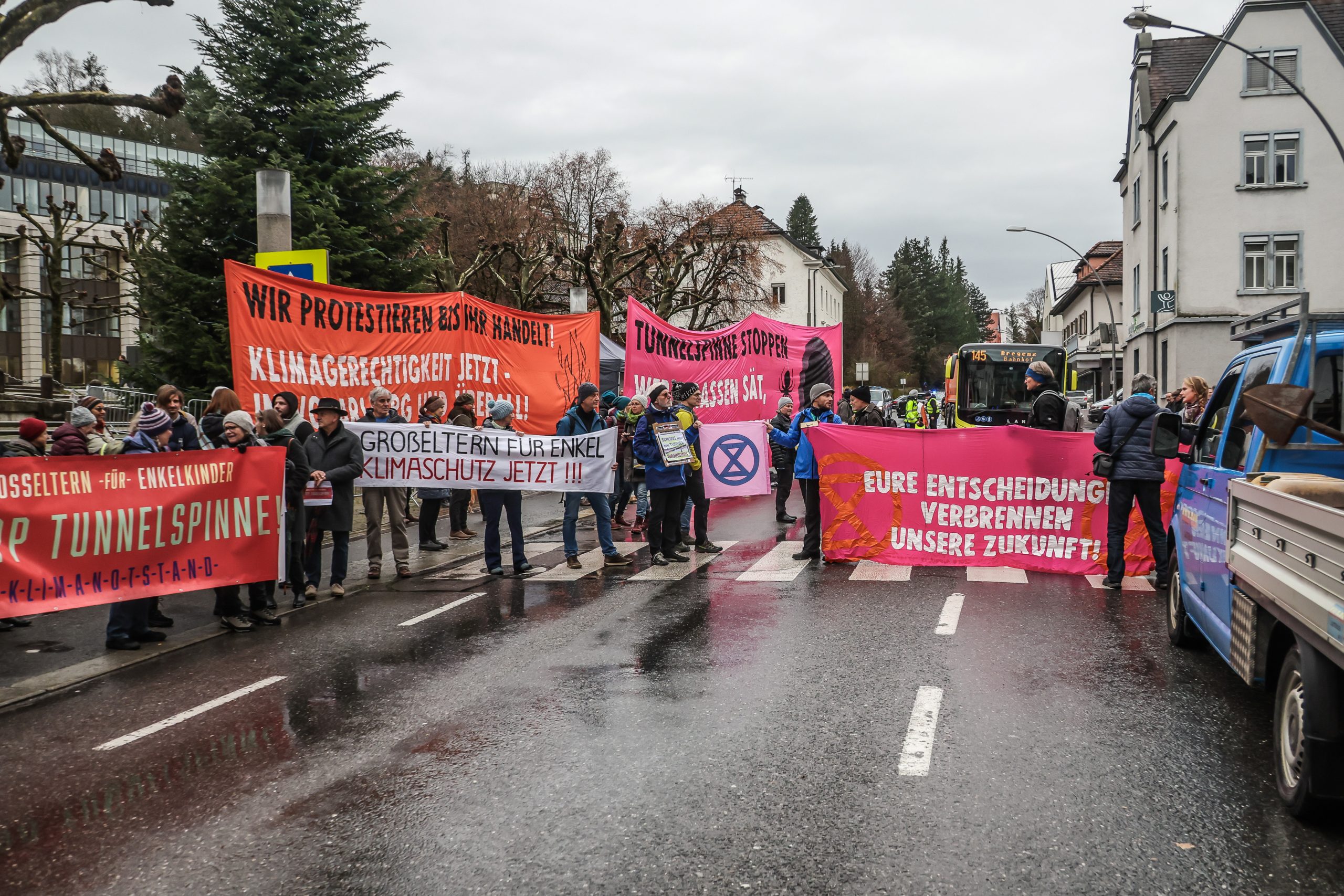 Die gestrige Demonstration in Bregenz wurde von der Klimaaktivistengruppe Extinction Rebellion organisiert. Der Hauptfokus lag auf dem Protest gegen das umstrittene Bauvorhaben der "Tunnelspinne", einem Projekt, das sich bereits in der Umsetzung befindet. Die Demonstranten versammelten sich vor dem Landhaus, um auf die ihrer Meinung nach ökologischen Fehlentscheidungen aufmerksam zu machen.