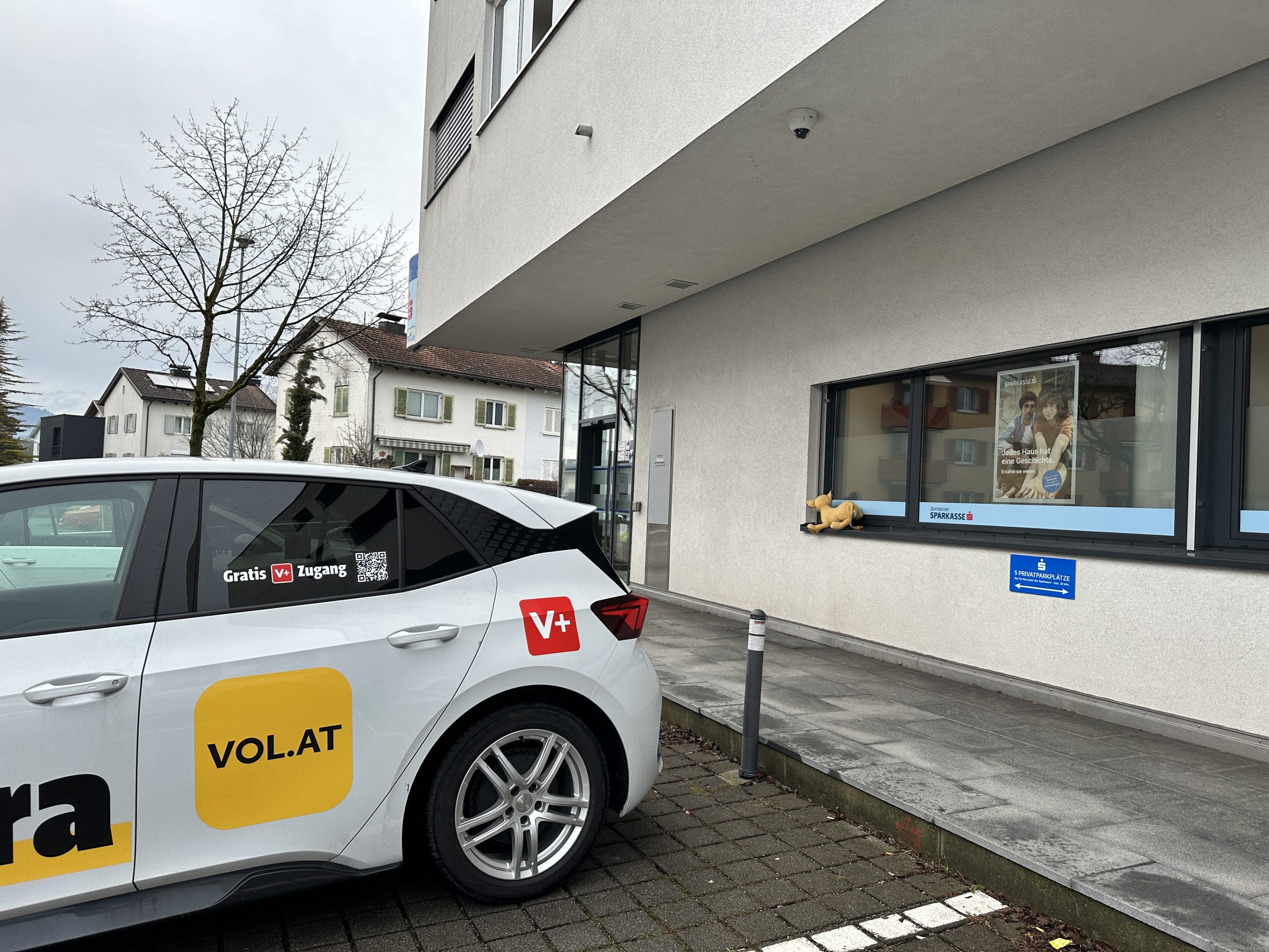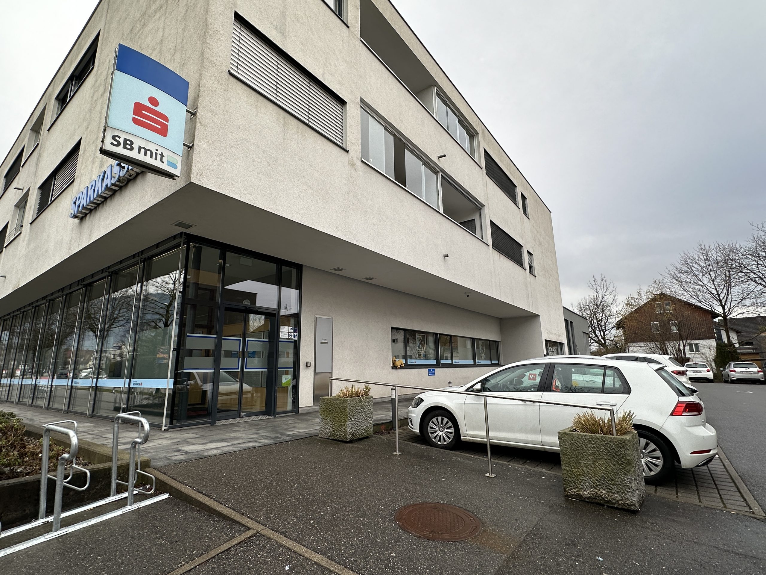 Die fünf Parkplätze für Sparkassen-Kunden und -Besucher. ©VOL.AT/Mayer