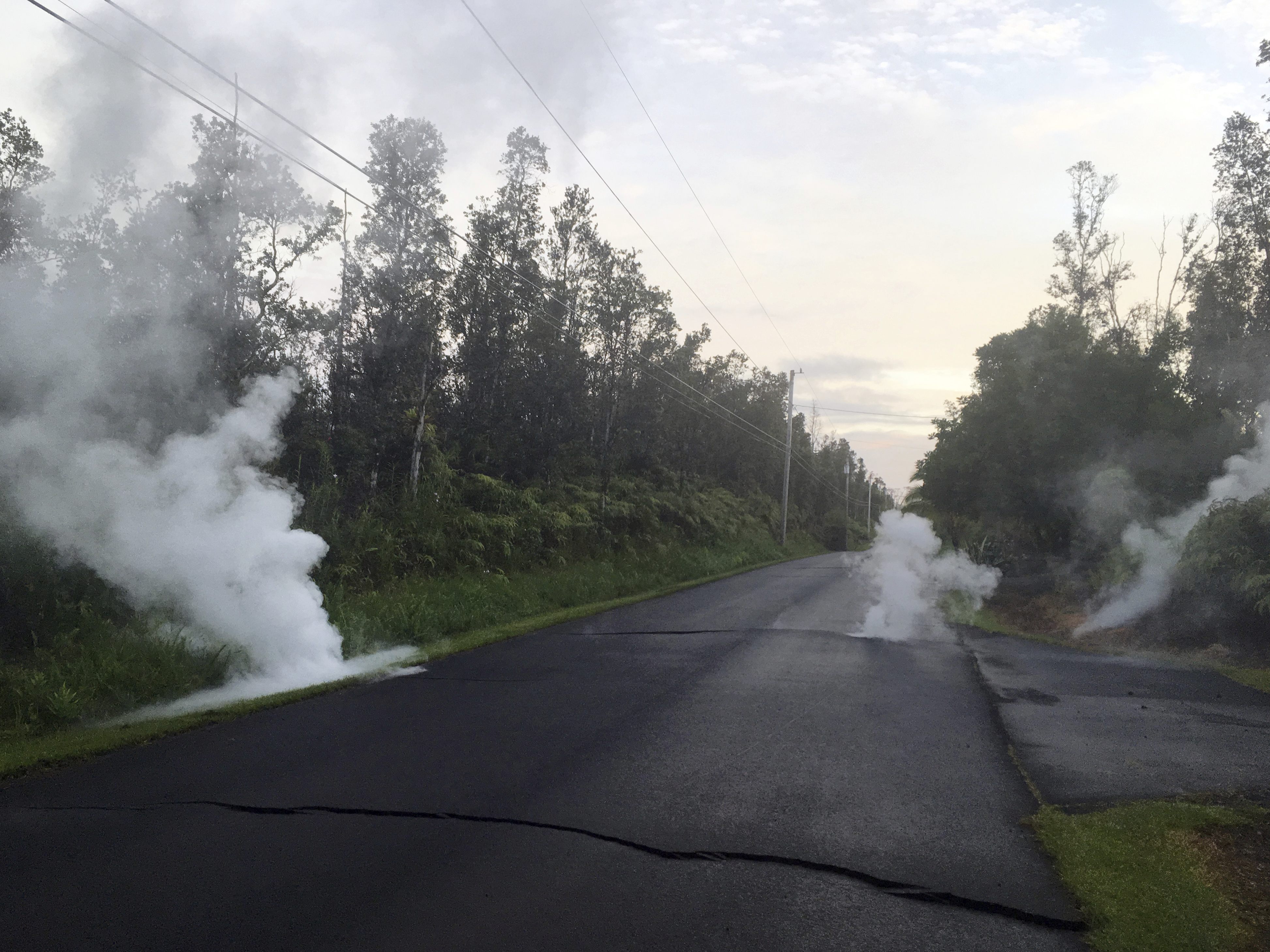 Luftaufnahmen zeigten orangefarbene Lava, die aus einer 150 Meter langen Erdspalte in die Luft gespuckt wurde. An einer Straße im Wohngebiet Leilani im Südosten der Insel quollen Rauch und Lava aus dem Erdinneren nach oben, wie die Katastrophenschutzbehörde mitteilte. Auf Fernsehaufnahmen waren Lavaströme in einem Waldgebiet zu sehen. In der Gegend stehen rund 770 Häuser.
