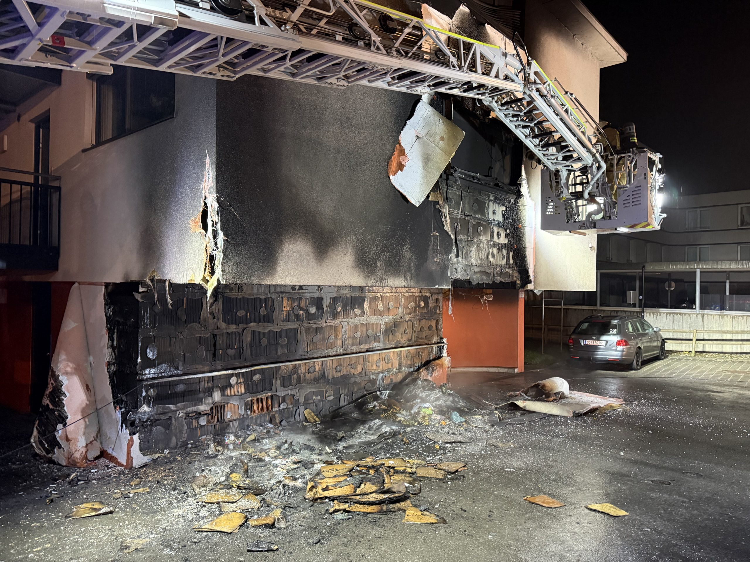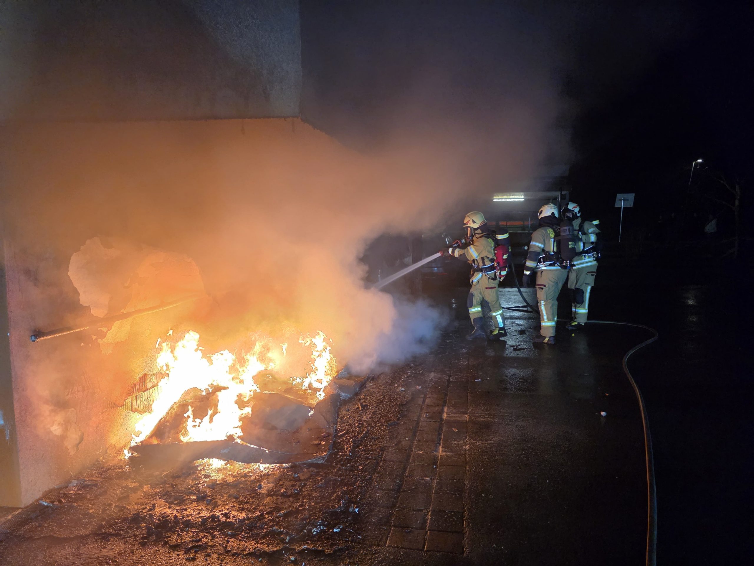 Der Brand wurde gegen 02:07 Uhr in der Kaiser-Franz-Josef-Straße gemeldet. Beim Eintreffen der Einsatzkräfte standen vier Müllcontainer bereits nahezu vollständig in Flammen. Die Feuerwehr Hohenems brachte das Feuer rasch unter Kontrolle und verhinderte eine weitere Ausbreitung.