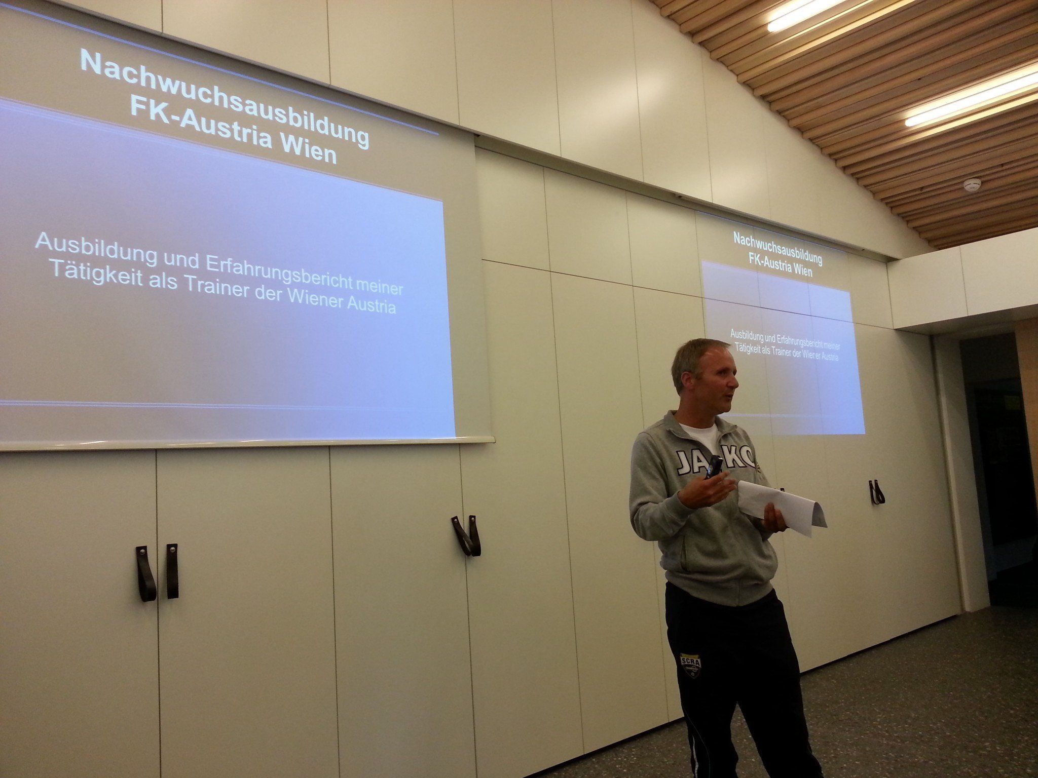 Nach der Begrüßung von Präsident Johannes Engl und Nachwuchsleiter Franz Stiegler präsentierte „Butre” die Philosophie, Ziele sowie die Strukturen der Nachwuchsabteilung und der Akademie des FK Austria Wien, die zu den erfolgreichsten in ganz Österreich zählt.