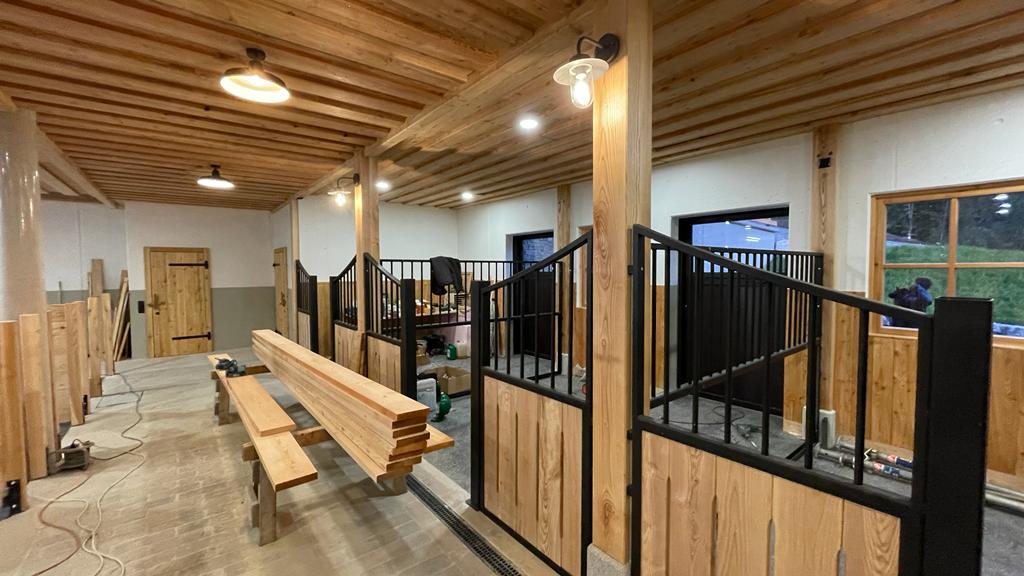 Doch erst wird uns noch der Hof gezeigt, wo gerade neue Stallungen mit viel Liebe zum Detail entstehen. Für die Pinzgauer Rinder, die hier in Mutterkuhhaltung und mit ganz viel Freilauf gehalten werden, sowie Ponys und Pferde wird nämlich auf Gut Berg derzeit gebaut - riesengroße Fenster, hohe Decken und schönes helles Holz versprechen, dass die Tiere hier "wie im Hotel" logieren und genug Platz haben werden, um sich richtig wohlzufühlen. Auch eine Küche, in der die kleinen Gäste Brot backen können, soll hier noch entstehen, sodass es sommers wie winters Highlights zu erleben gibt - natürlich befinden wir uns ja auch inmitten der Ski-Region Amadé mit Piste unweit des Hotels.
