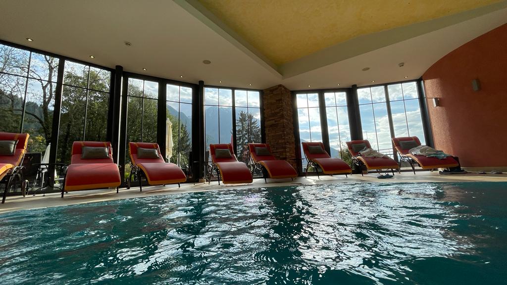 Im Hotel angekommen, setzt sich die Begeisterung fort: Vom Balkon unseres gemütlichen Zimmers aus genießen wir genau den herrlichen Blick auf die Berge, der uns gleich so gefallen hat, und bei der liebevollen Einrichtung des Naturhotels, das von der Familie Gschwandl seit 1976 als Familienbetrieb geführt wird, gibt es jede Menge zu entdecken. Für großen Jubel bei beiden Kindern sorgen das hoteleigene Hallenbad und ein Spielraum mit Wutzler, Kletterwand, Riesen-Lego-Steinen und Co. An uns Erwachsene ist ebenfalls gedacht - hier wird ein Wellness & Spa-Bereich mit Saunalandschaft geboten.