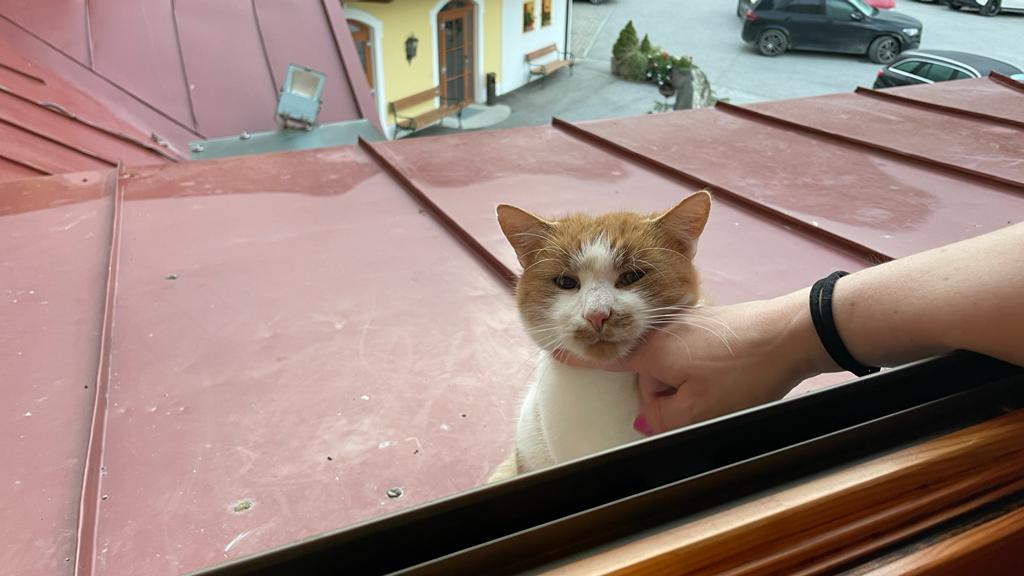 Nach kurzem Planschen und Toben im Indoor-Pool, ist es auch schon Zeit für ein nettes Get-Together, bei dem wir mehr über das Naturhotel Gut Berg erfahren und anschließend eine Führung durch die gerade im Umbau befindlichen Stallgebäude erhalten - schließlich ist einer der großen Vorzüge des Hauses, das über 100 bis 110 Betten verfügt, der angeschlossene Bauernhof. Familie Gschwandl führt aus, worum es ihr beim Hotelbetrieb in erster Linie geht: Regionalität wird hier ganz groß geschrieben, "zurück zum Ursprung" lautet die Devise. Fleisch, Milch, Eier und Co., die einem hier serviert werden, stammen vorwiegend aus der nahen Umgebung, vom eigenen Hof bzw. Bauern, die man persönlich kennt. "Eher mehr Qualität, nicht mehr Betten!" führt Frau Gschwandl aus. Wert legt man auch darauf, dass das Gut Berg ein richtiger Bauernhof sei, kein Ort an dem Landwirtschaft "spielerisch" inszeniert werde. Das spürt man auch als Gast - das Authentische ist hier an jeder Ecke erlebbar. Zu den Tieren, mit denen man hier mehr oder weniger auf Tuchfühlung gehen kann, gehören Kühe, Schafe, Ziegen, Pferde, Ponys, Hasen, die schon genannten Hühner und dazu Hofhund Emma und Kater Garfield - ein Waisenkind, das von Familie Gschwandl mit der Flasche groß gezogen wurde. Zu letzterem kommen wir in besonders schönen Kontakt, als er morgens vor unserem Fenster auf dem Flachdach sitzt, hereinschaut und sich behaglich schnurrend bei uns Streicheleinheiten abholt - nicht nur für die Kinder ein magischer Moment.