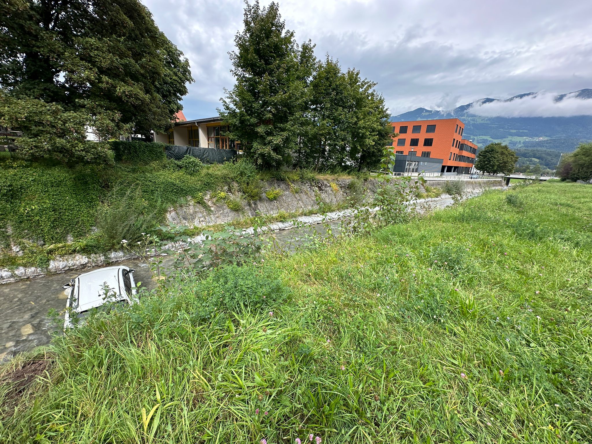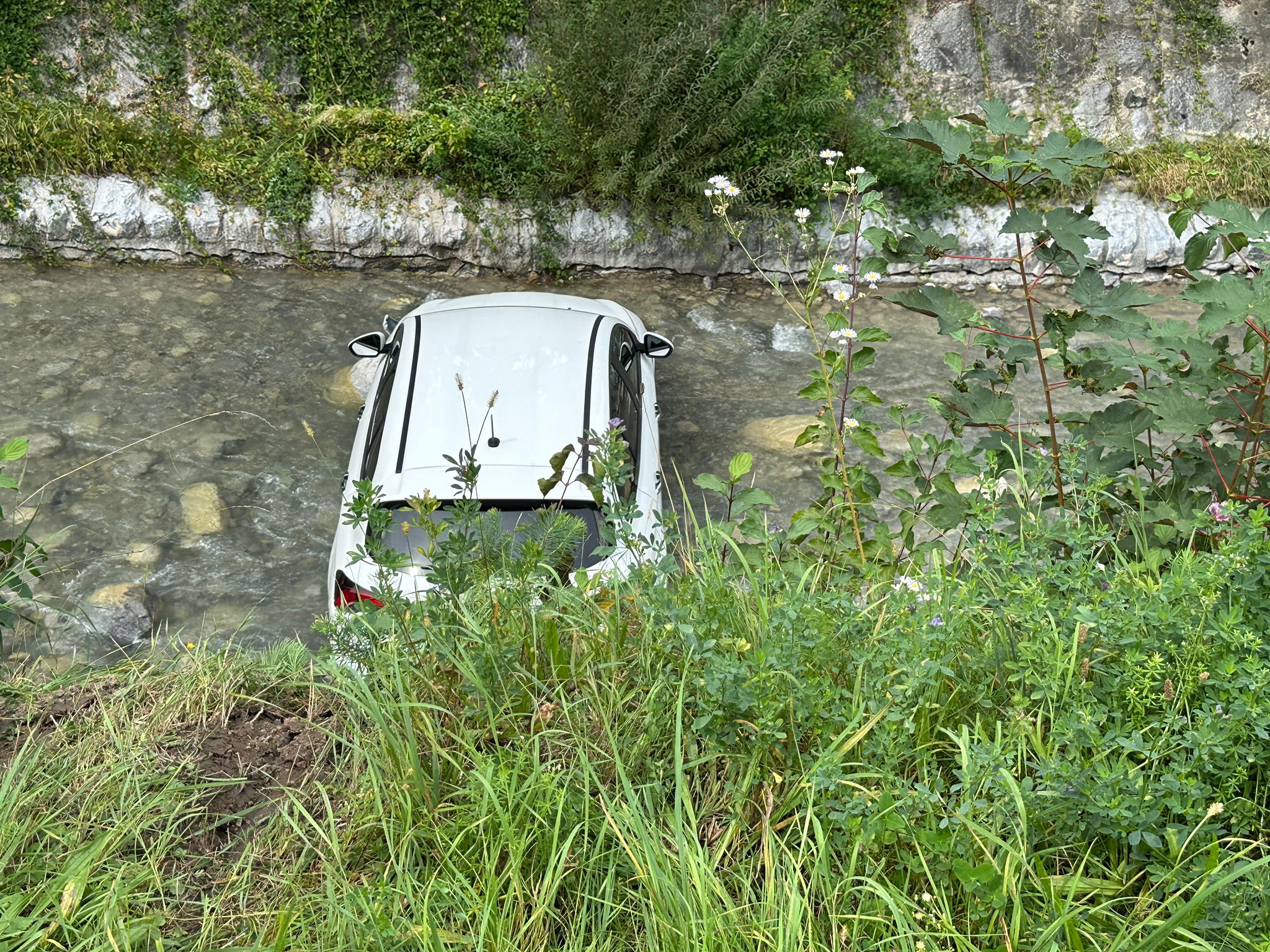 Am Mittwochvormittag stellte eine Fahrzeuglenkerin ihren Pkw am Parkplatz des Wirtschaftspark Walgau in Nenzing ab und vergaß dabei offensichtlich, die Handbremse anzuziehen. Gegen 11:55 Uhr setzte sich das Fahrzeug selbständig in Bewegung, rollte rund fünf Meter über eine leicht abschüssige Wiese und stürzte anschließend über eine fünf Meter hohe Steinmauer in die Meng, wo es schließlich zum Stillstand kam.