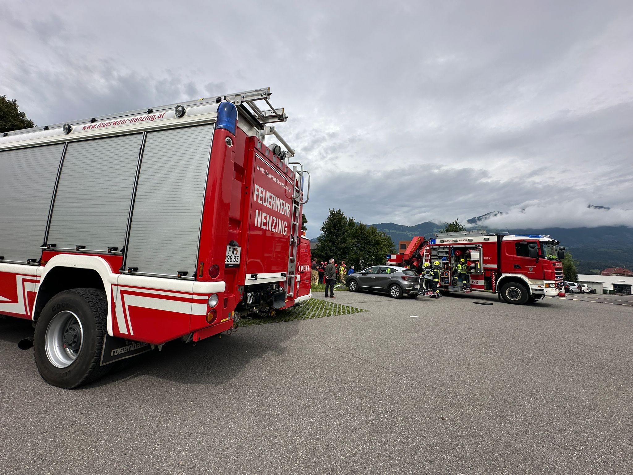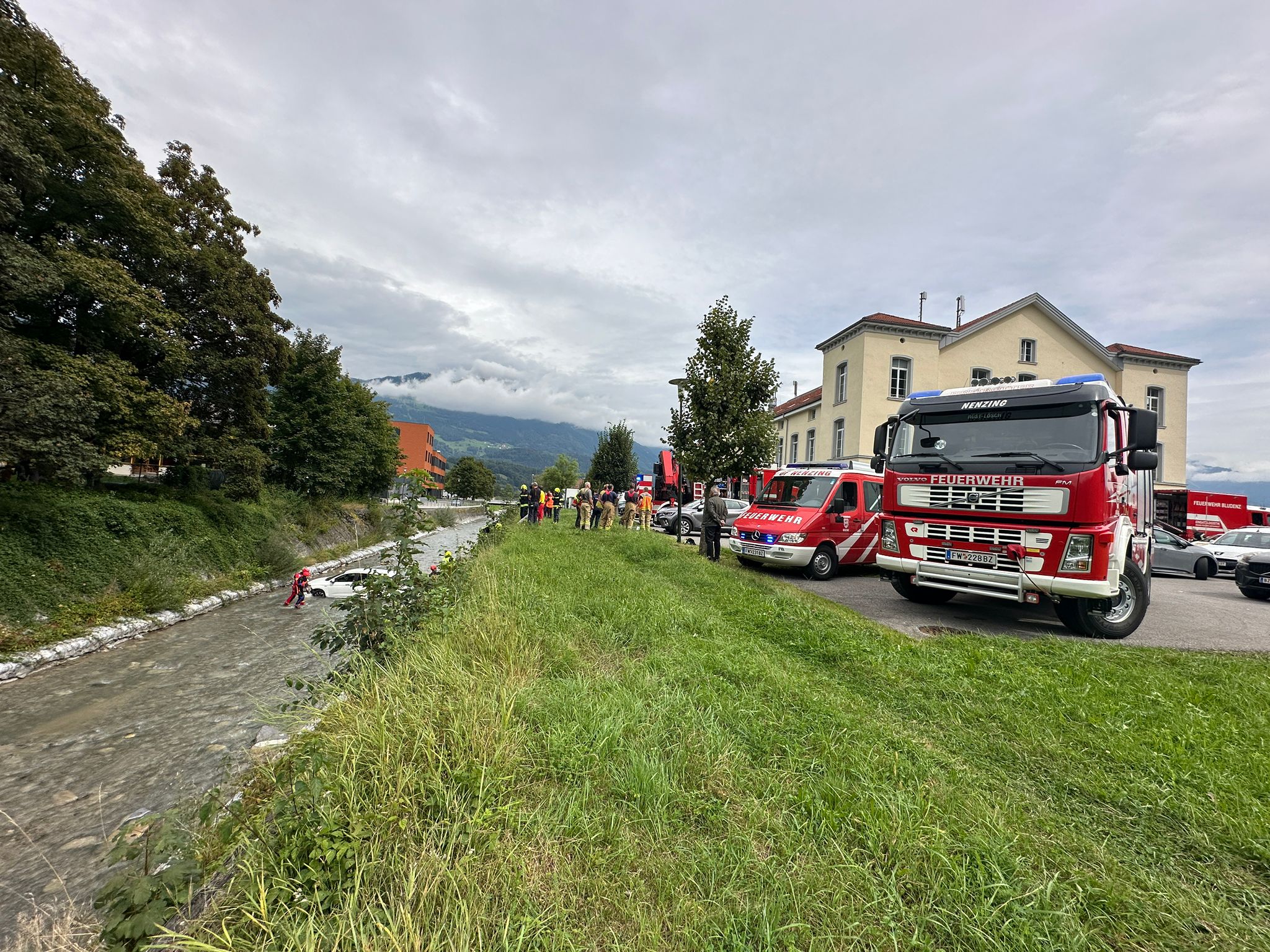 Nach Alarmierung der Einsatzkräfte konnten durch die Feuerwehr Nenzing und die Wasserrettung Vorarlberg weder in der Meng noch im Fahrzeug Personen festgestellt werden, die Lenkerin konnte schließlich in einem Geschäft des Wirtschaftsparks ausfindig gemacht werden.