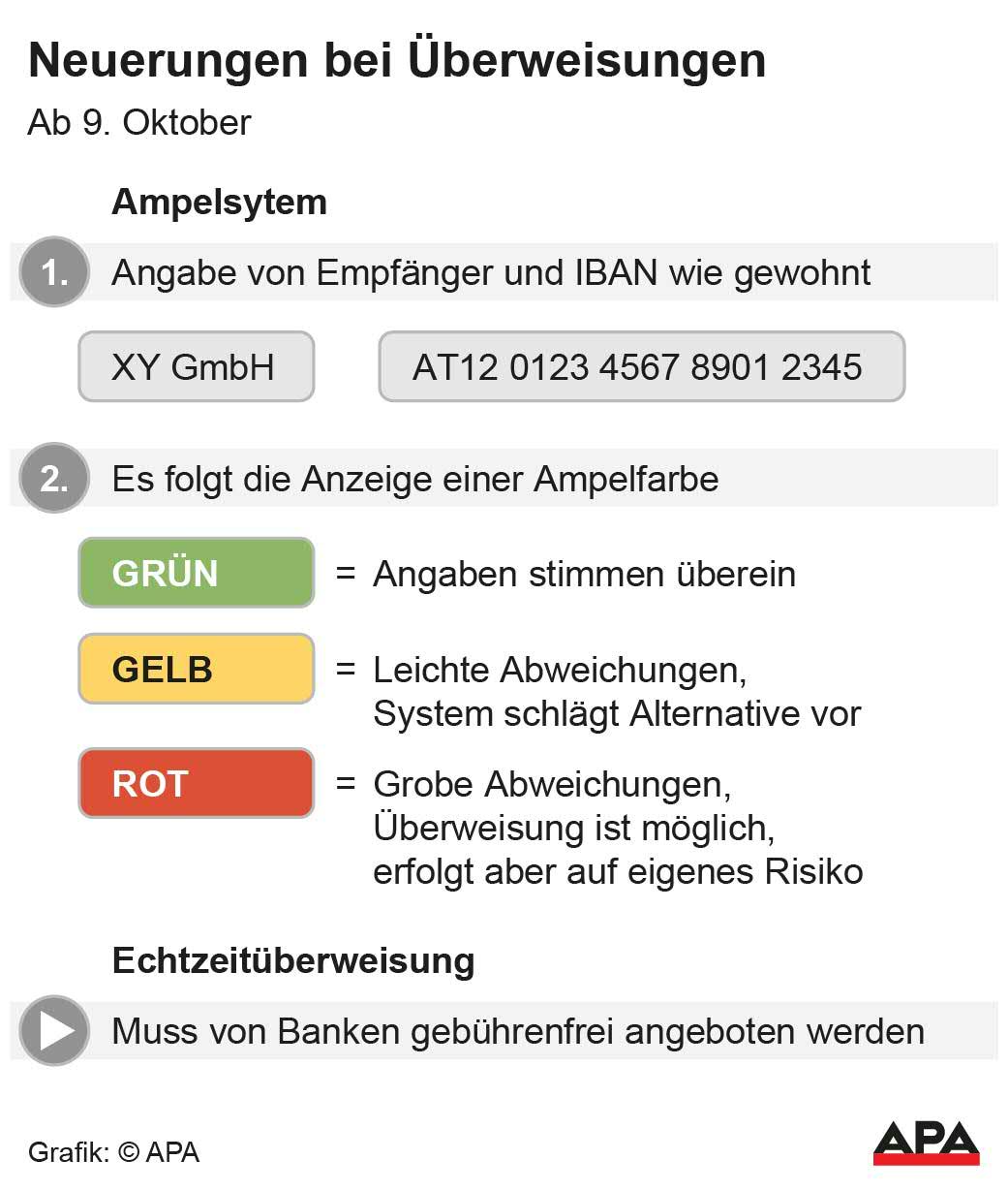 Seit dem 9. Oktober müssen Banken Echtzeitüberweisungen innerhalb des Euroraums verpflichtend anbieten. Um Fehlüberweisungen und Betrug vorzubeugen, gibt es zudem neue Sicherheitsvorkehrungen: Die Geldhäuser prüfen vor dem Abschluss der Überweisung, ob der IBAN und der Empfängername zusammenpassen. Dabei gilt ein Ampelsystem: Stimmen die beiden Parameter überein, gibt die Bank grünes Licht für die Überweisung. Gibt es leichte Abweichungen (gelb), beispielsweise einen Tippfehler im Empfängernamen, macht das System einen Vorschlag für den richtigen Namen. Bei groben Abweichungen zwischen IBAN und Name wird die Überweisung beflaggt (rot). In jedem Fall kann der Kunde eine Warnung übergehen und trotzdem überweisen. Allerdings übernehme er dann die Haftung für den Fall einer Fehlüberweisung.