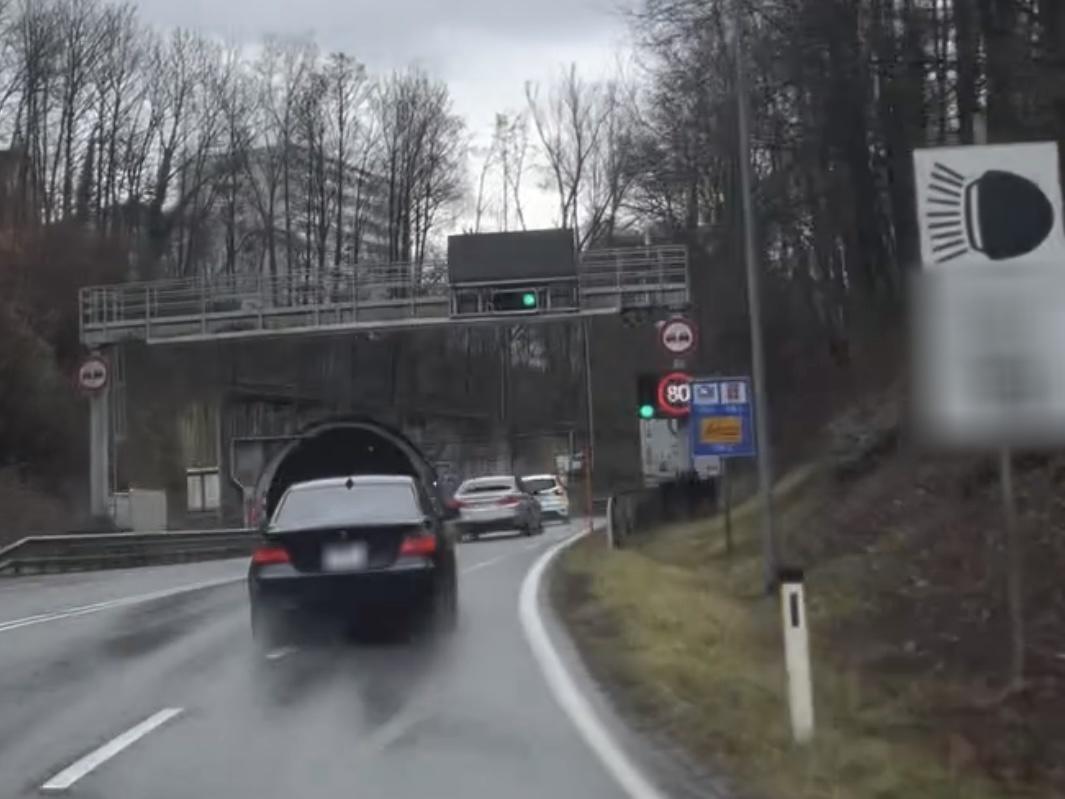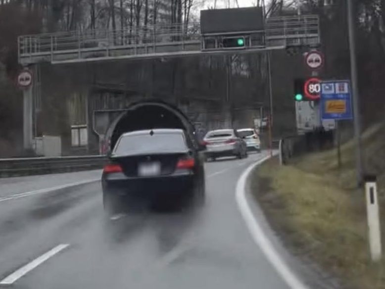 Das Fahrzeug mit deutschem Kennzeichen driftet vor dem Tunnel mehrfach. ©Screenshot