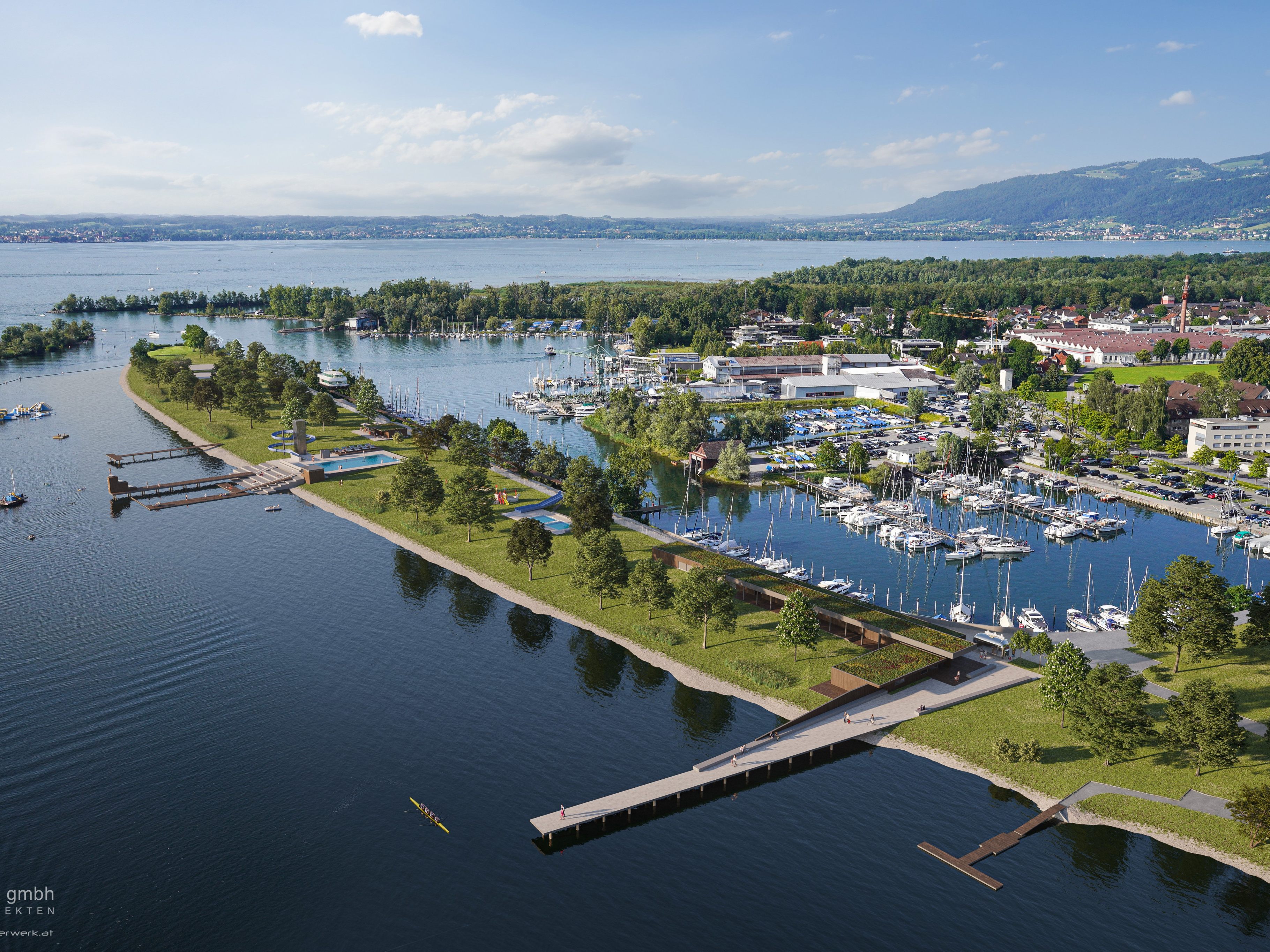 Die Harder Gemeindevertretung hat sich in einer breiten Diskussion mit mehreren Abstimmungspunkten auf die Detailplanung des neuen Harder Strandbades geeinigt. Im Fokus des neuen Harder Strandbades stehen die Orientierung auf das Naturerlebnis Binnenbecken, das mit einem schwimmenden 2 Meter tiefen Seewasserbecken ausgestattet werden soll und am ganzen Bodensee einzigartig ist. Mit einem nach Alter und Nutzung abgestuften Beckenkonzept vom Kleinkinderbecken über das Erlebnisbecken bis hin zum Schwimmerbecken wird das Harder Strandbad für Besucher aller Altersgruppen attraktive Angebote bieten. Fix dabei ist wieder eine große Rutsche, die noch länger wird als die bisherige. Die Beckenfläche im „großen“ Becken wird größer als bisher, der Tiefenverlauf hingegen verringert. Das hilft den Kindern im flacheren Bereich beim Schwimmen lernen. Im tieferen Bereich ist auch für Erwachsene das Schwimmen möglich. Daher wird dieses Becken im Vergleich zum Vorentwurf noch etwas breiter ausfallen.