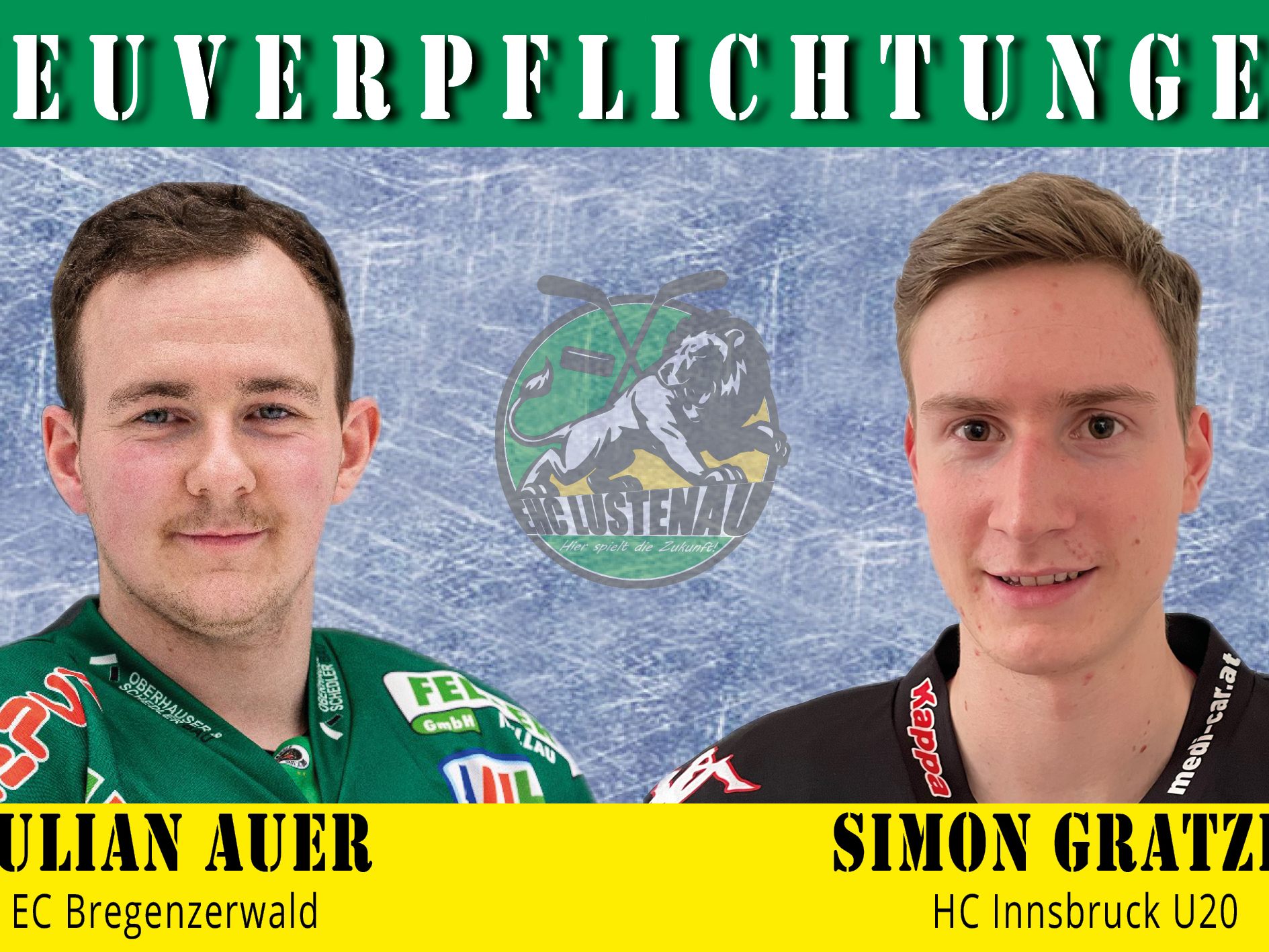 Mit Julian Auer und Simon Gratzer konnte der EHC Lustenau zwei junge Spieler für die kommende Alps Hockey League verpflichten. Beide Cracks verstärken die Abwehr der Sticker.