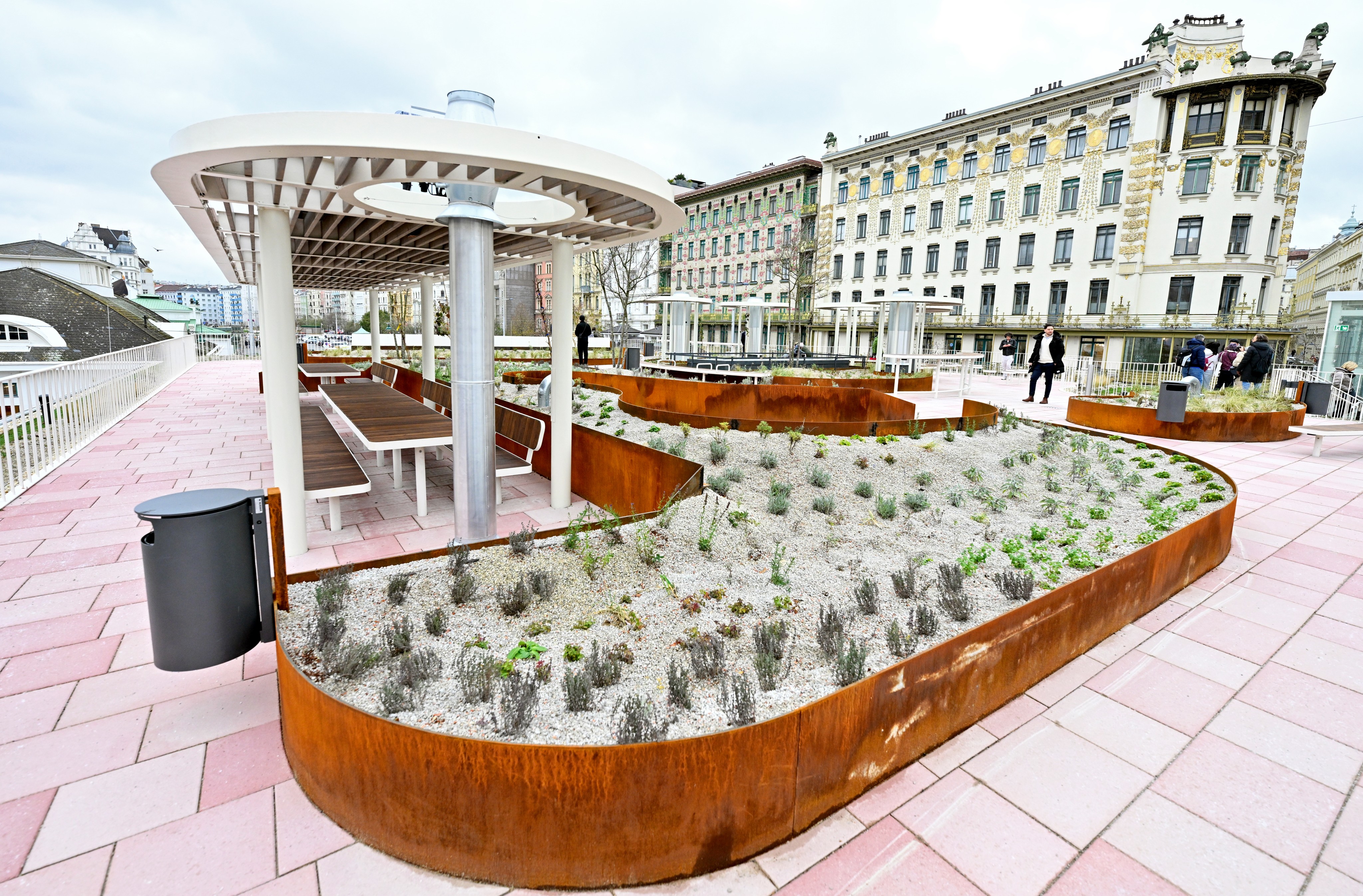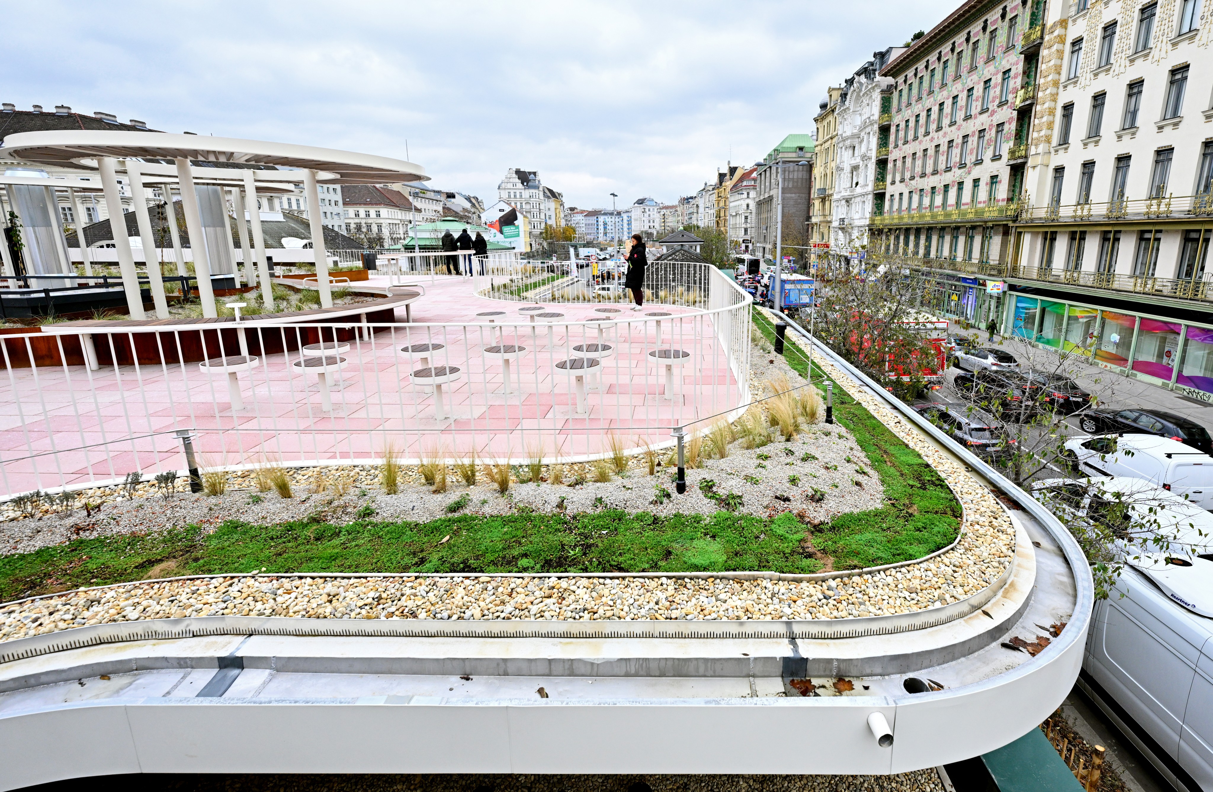 The surroundings of the Naschmarkt are being extensively redesigned. Already completed is the so-called Naschpark, which was built at the far western end on the Vienna River overpass. The adjacent flea market area, however, remains in its original state. The area where second-hand goods are offered on Saturdays serves as a parking lot during the week. As Sima explained, this area will be addressed in 2027. Before that, the renovation of open spaces directly at the hall is planned. They are used for the farmers' market.