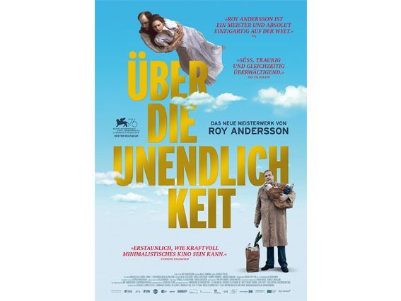 11.09.2020 "Über die Unendlichkeit" von Roy Andersson zeichnet sich durch die streng durchkomponierten Bilder und den lakonisch-melancholischen Ansatz aus. Der Regisseur blickt in kurzen Episoden in die traurigen Seelen der Menschen und reflektiert so über die menschliche Existenz. Er zeigt einen Priester, der den Glauben verliert, Eltern am Grab ihres toten Sohnes, deutsche Soldaten im Weltkrieg und ein Liebespaar, das über eine völlig zerstörte Stadt schwebt.