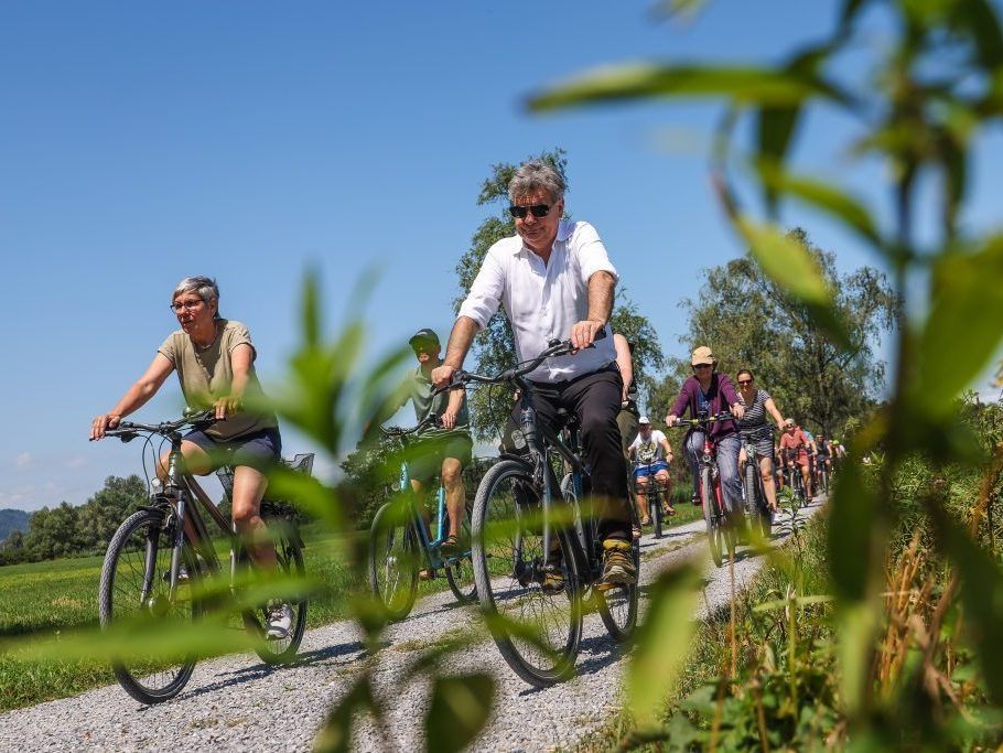 21.07.2023 Vizekanzler Kogler, Justizministerin Zadic und Gesundheitsminister Rauch radelten mit Fans ins Auer Ried.
