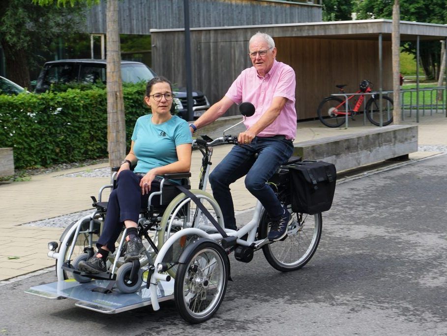 20.07.2023 Die Rollstuhl-Rikscha im Sozialzentrum Egg ermöglicht Menschen im Rollstuhl, das Gefühl des Fahrradfahrens zu erleben.