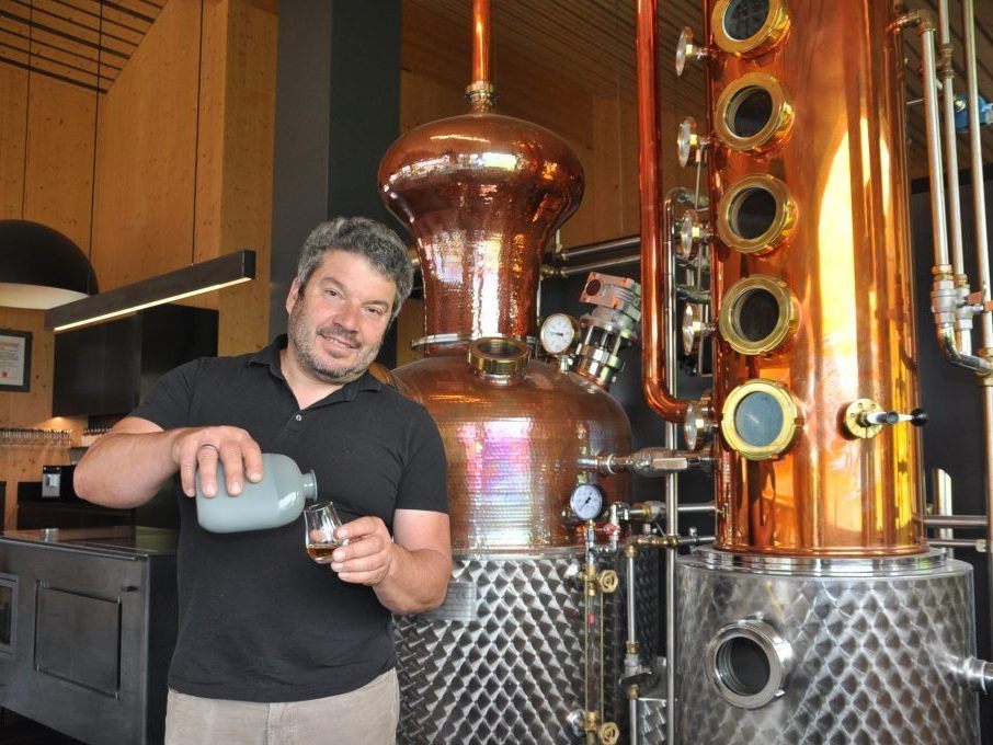 9.08.2023 Edelbrandsommelier Harald Bitschnau experimentiert mit Whisky-Produktion in 1070 Metern Höhe.
