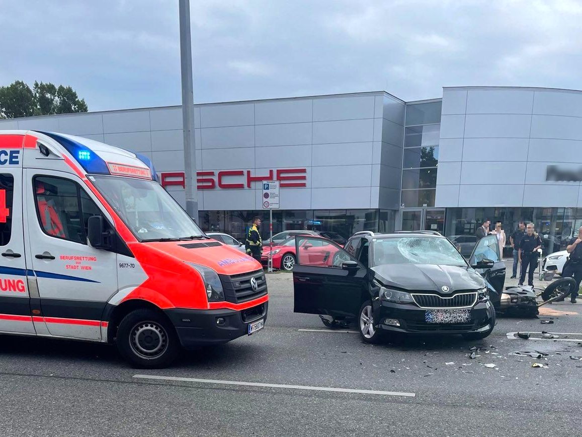 Auto mit Motorradlenker in Wien-Floridsdorf kollidiert