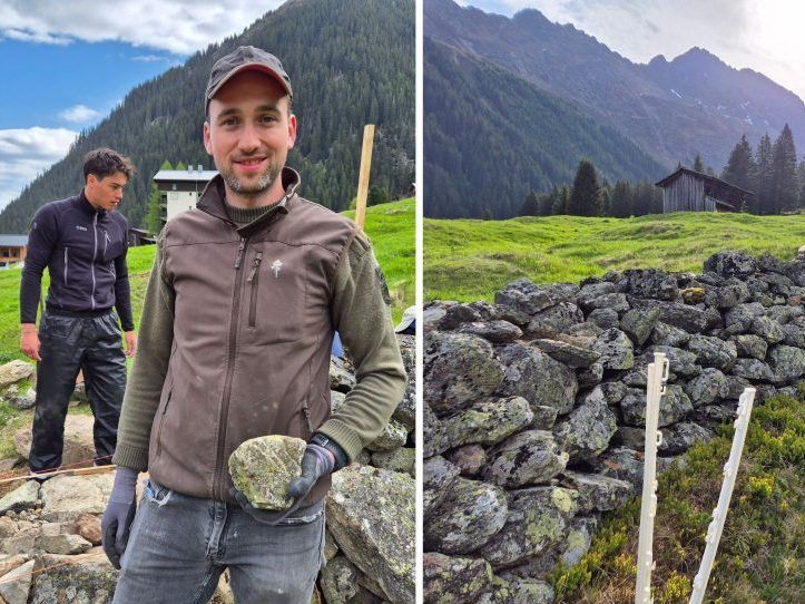 21.05.2025 Studierende der BOKU Wien sanieren die Trockensteinmauer entlang der Via Valtellina in Gargellen – ganz ohne Mörtel, sondern nur mit den Steinen vor Ort.