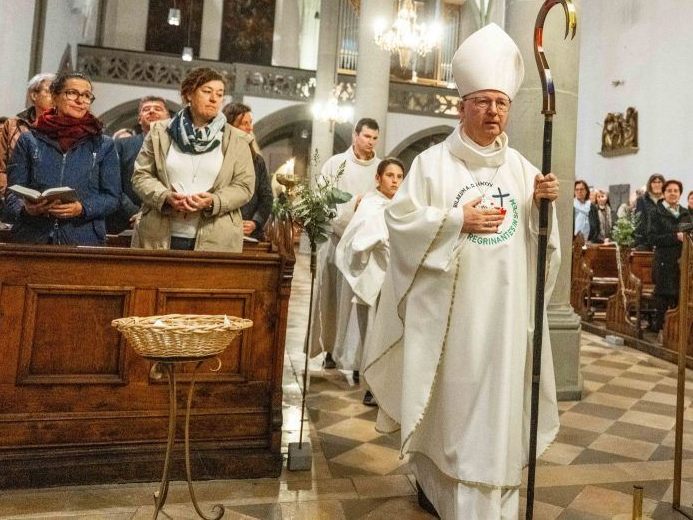 25.04.2025 Letzte Ehre aus der Ferne: Zahlreiche gläubige beim Gottesdienst zum Gedenken an Papst Franziskus in Feldkirch.