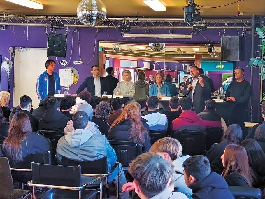 12.03.2025 Dornbirner Bürgermeisterkandidatinnen und -kandidaten waren im Austausch mit der Jugend.