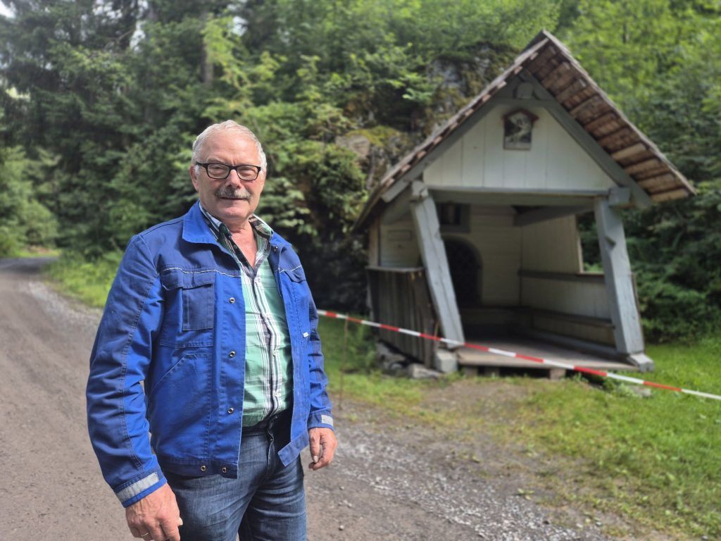 22.07.2025 Ein Auto hat die Bannwaldkapelle im Silbertal beschädigt. Ihr Verwalter Ludwig Zudrell hofft, dass sich der Verursacher meldet.