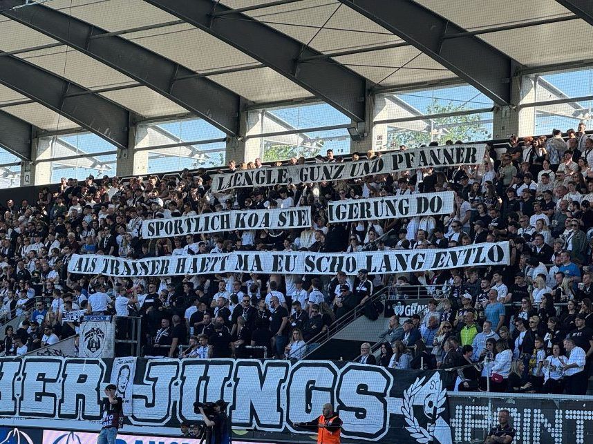 13.05.2025 Ein Transparent beim Spiel gegen den GAK lässt in Altach niemanden kalt.