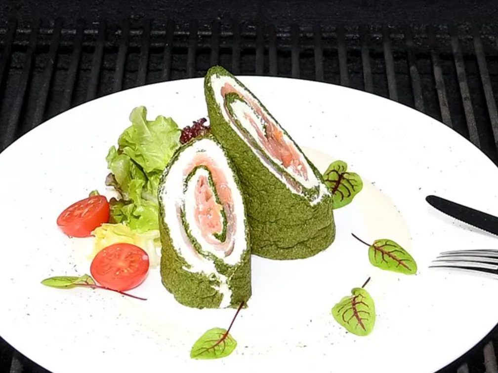 Spinatroulade mit Räucherlachs und Wasabi
