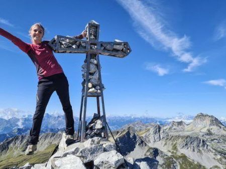 2.10.2021 Von Klösterle wandern wir entlang des Speichersees und an der Ravensburger Hütte vorbei auf den Gipfel mit zwei Kreuzen.