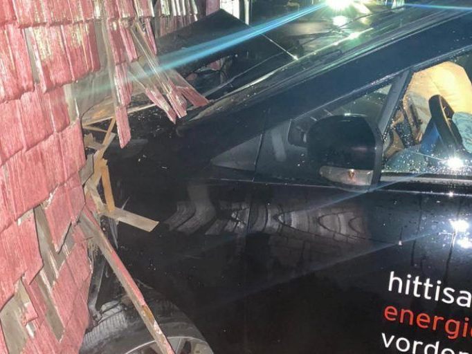 20.12.2021 Hittisauer Gemeindeoberhaupt knallte mit Elektroauto gegen Gasthof in Doren.