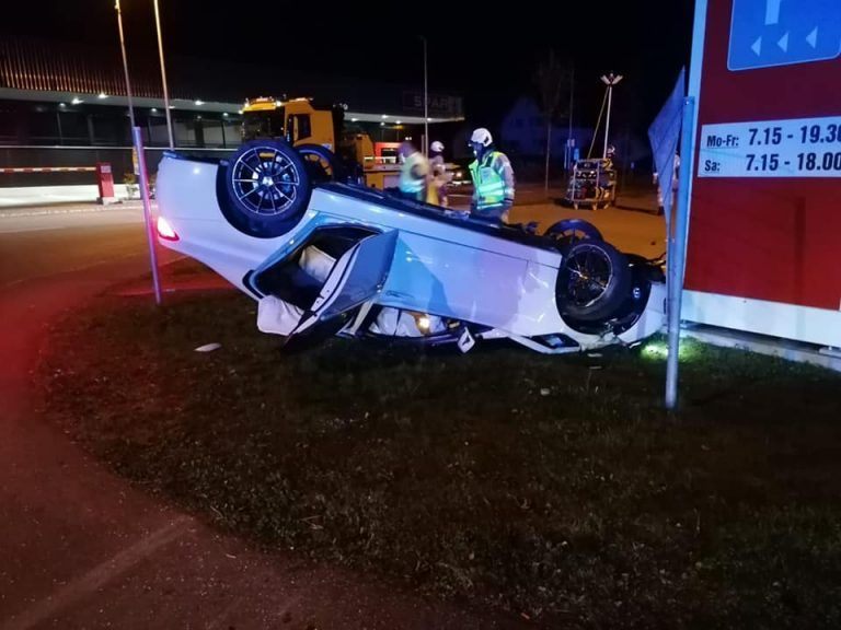 26.09.2021 Noch glimpflich ging ein spektakulärer Unfall für einen jungen Autofahrer am Sonntagmorgen in Fußach aus.