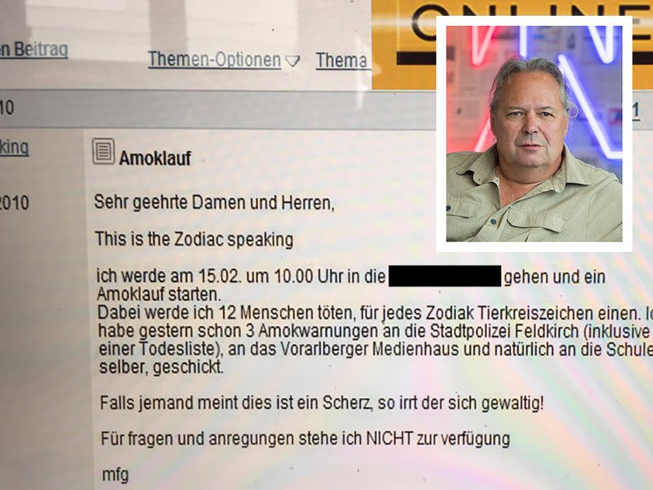 12.06.2023 Im letzten Teil der VN-Serie „Mordsgeschichten“ erzählt Norbert Schwendinger, Morddezernatsleiter in Pension, von einem angekündigten Amoklauf.
