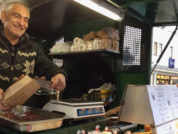 Maroniverkäufer Nebo hat jetzt alle Hände voll zu tun