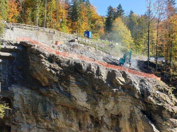 13.11.2019 Gefährliche Felsnase wird aus Sicherheitsgründen abgesprengt.