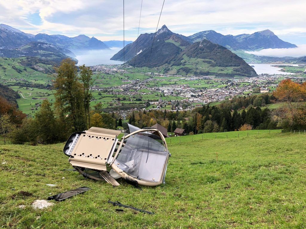22.10.2019 Massiver Windstoß ließ 8er-Gondel der Rotenfluebahn im Kanton Schwyz gegen Stütze krachen und brachte diese in der Folge zum Absturz.