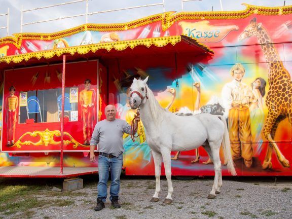 20.09.2019 Direktor Adolf Lauenburger sitzt mit Mensch und Tier seit drei Monaten fest. Jetzt darf der Zirkus auftreten.