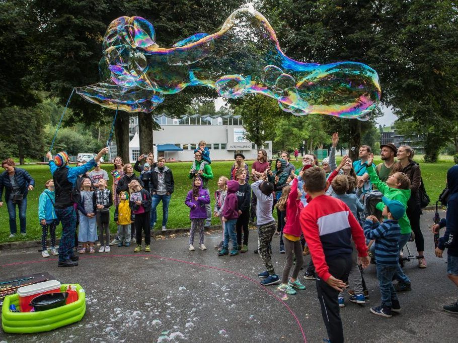 6.09.2019 Das Bubble Laboratory bewies gestern beim Luaga & Losna, dass Seifenblasen kein schlechtes Wetter kennen.