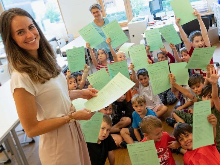 3.07.2019 Wettschuld eingelöst: Die Schulkinder hatten sich das Ei im Rahmen des Vorarlberger Lesetags erlesen.