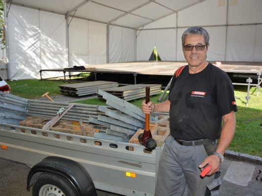 27.06.2019 Der Pensionist hatte die Leitung beim Aufbau der Außenbühne und des Festzelts inne. Götzis ist fürs Weltturnfest bereit.