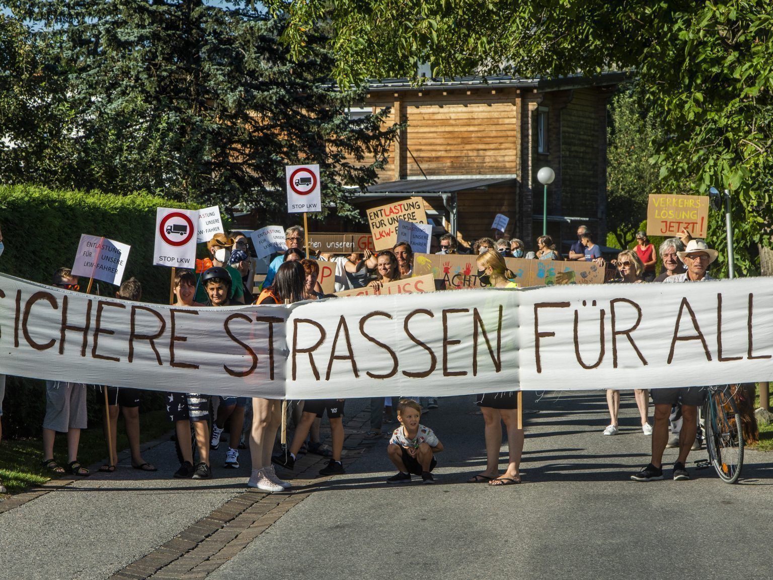 21.08.2020 Anrainer blockierten in Altach mehrere Nebenstraßen , um auf Verkehrsbelastung aufmerksam zu machen.
