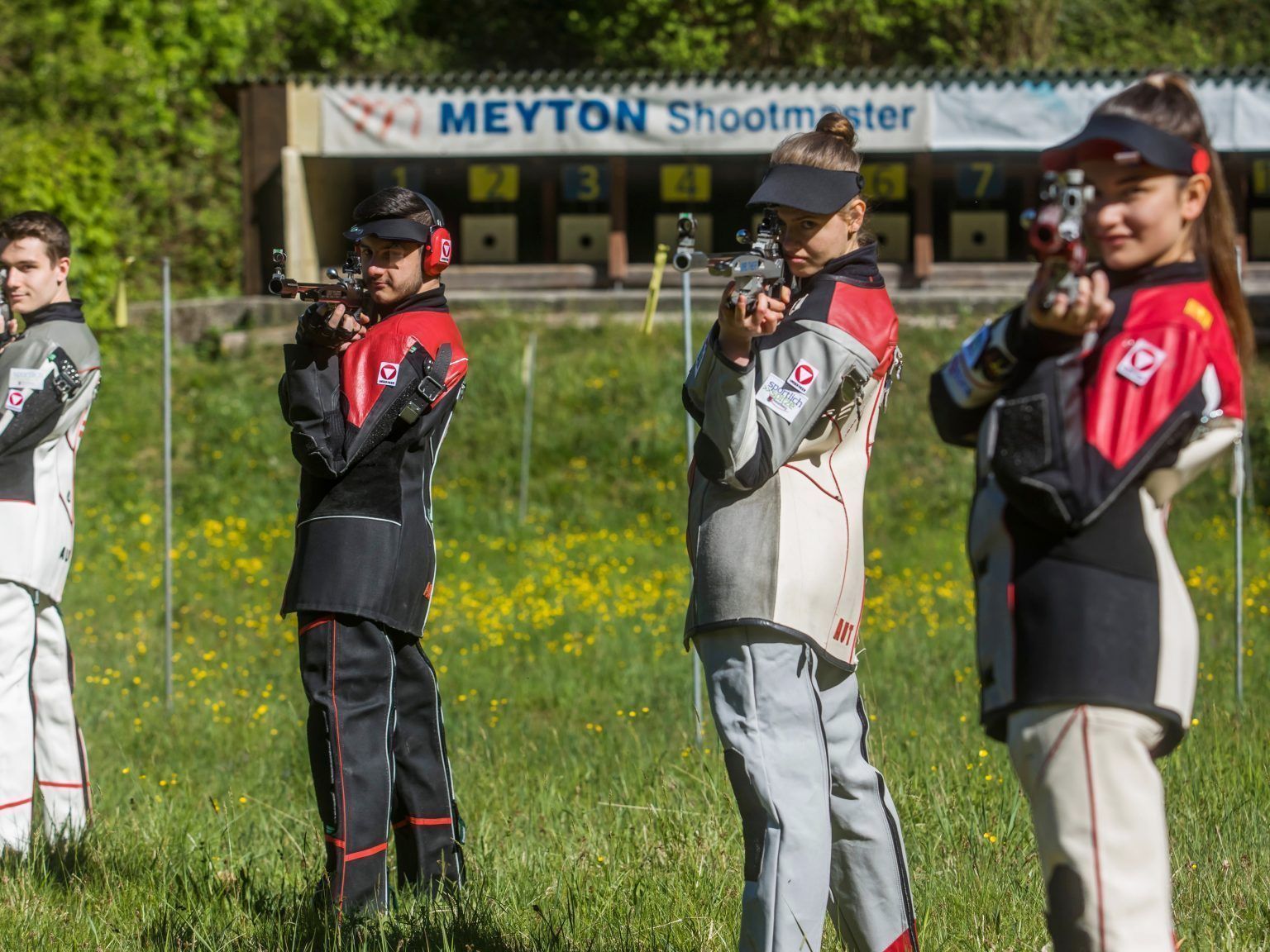 23.04.2020 Zurück am Schießstand: Sheileen Waibel, Marlene Pribitzer, Patrick Diem und Andreas Thum.