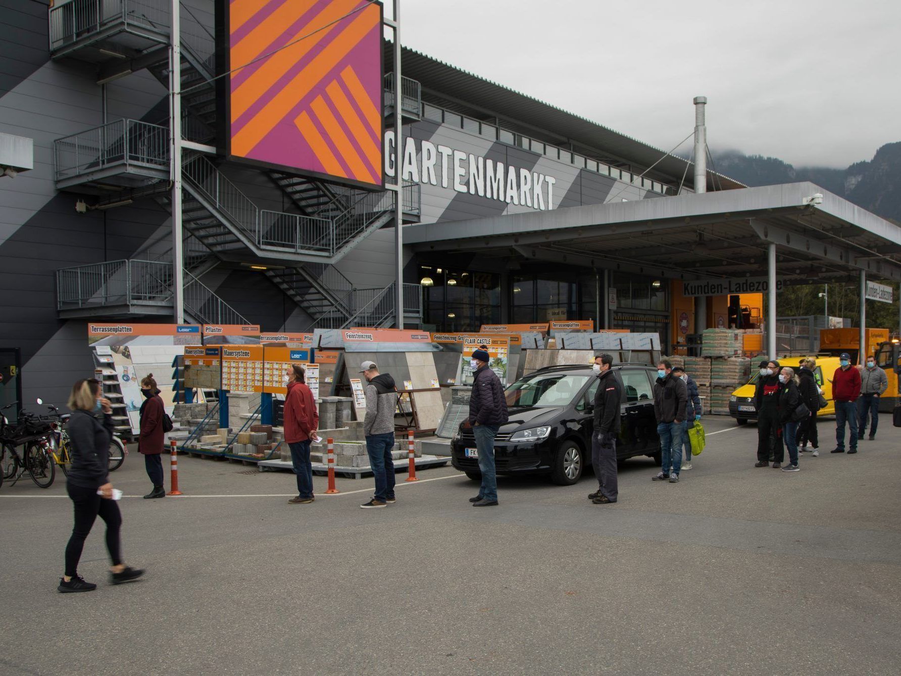 14.04.2020 Kunden stürmten den großen Baumarkt in Hohenems und verhielten sich trotzdem diszipliniert.