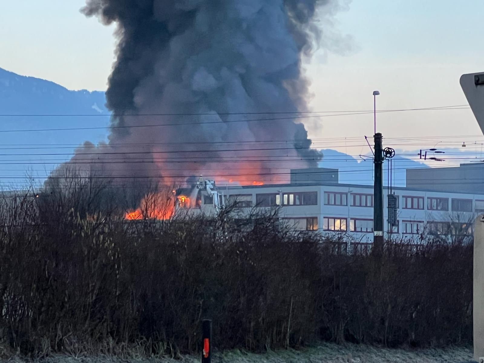 6.02.2024 Ein Brand in einem Gewerbegebiet in Wolfurt hat Montagfrüh zu einem Großeinsatz der Feuerwehren geführt.