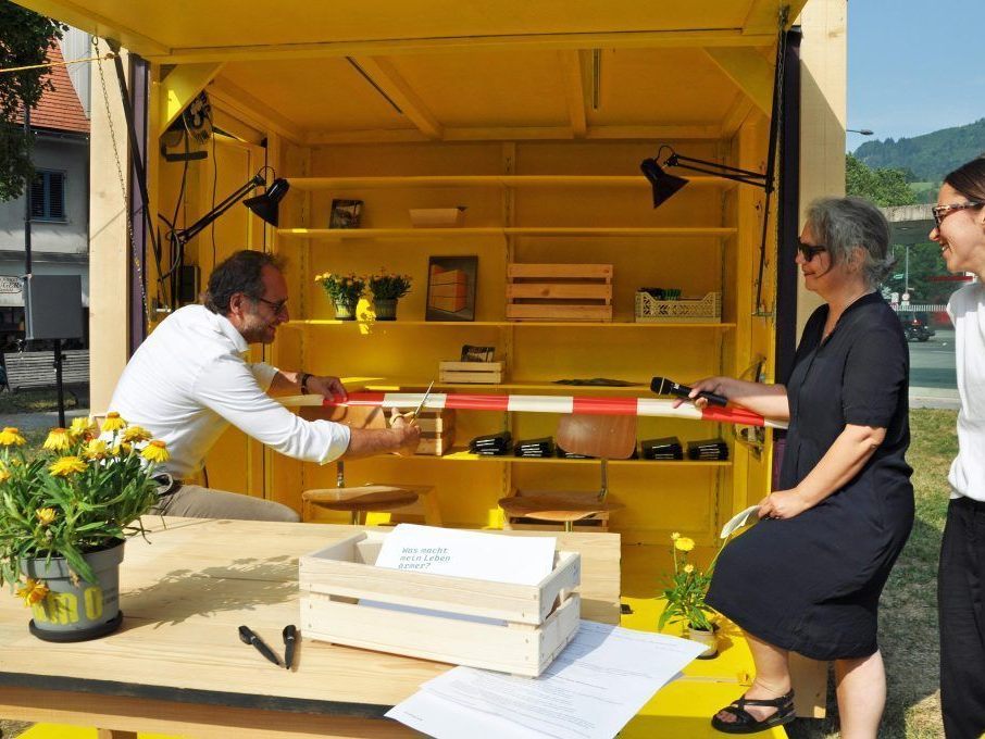 5.07.2023 Auf der Museumswiese beim Marktplatz wurde das Museum mobil (mumo) eröffnet.