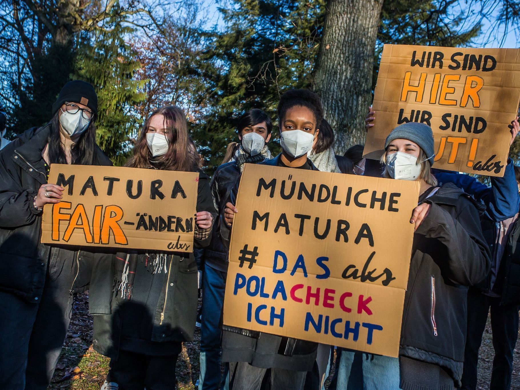 25.11.2022 Protest gegen mündliche Reifeprüfung bei klirrender Kälte in Bregenz. „Wir schreiben die Matura, nicht er.“