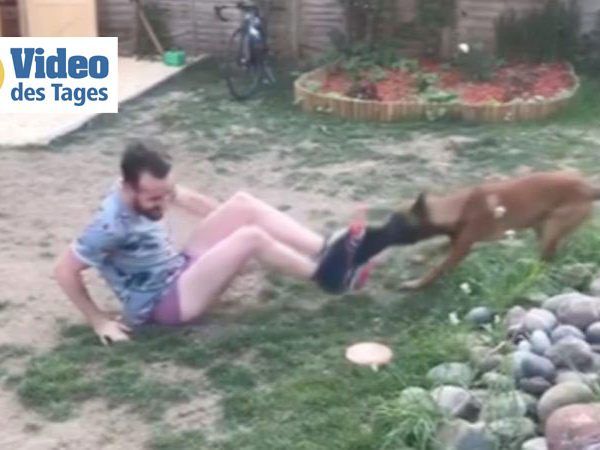 2.06.2019 Ein ungezogener Hund schleppte seinen Besitzer an der Hose durch den Garten.