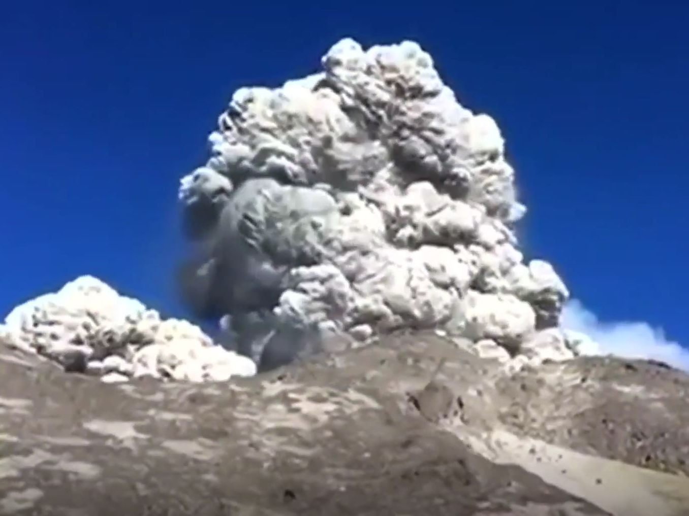 14.05.2018 Eine Gruppe von Studenten wollte gerade frühstücken, als der Mount Merapi, mit etwa 2900 Meter Höhe, eine kilometerhohe Rauch- und Aschewolke in den Himmel stieß.