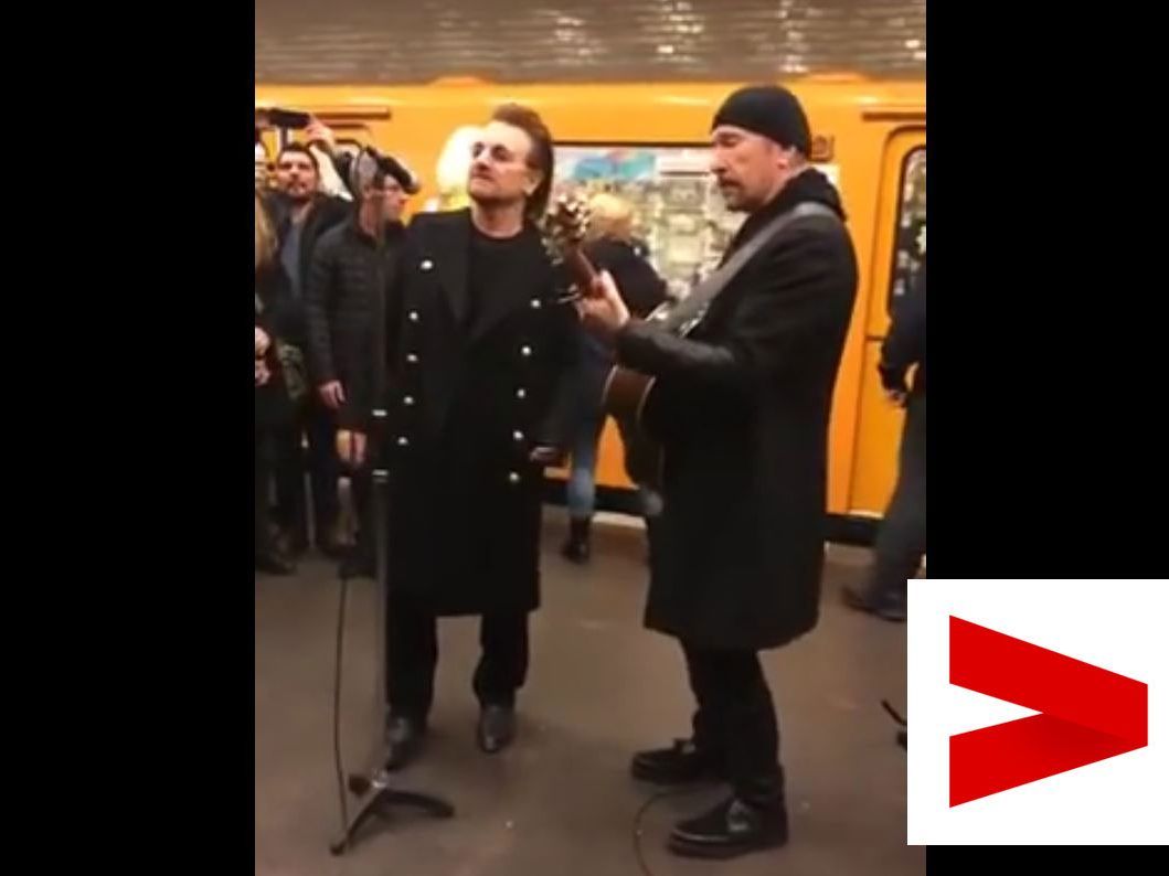 7.12.2017 Was für ein Auftritt! Die irische Rockband U2 gab am Dienstagabend ein Überraschungskonzert in der Berliner U-Bahn U2. Die Fans waren völlig aus dem Häuschen.