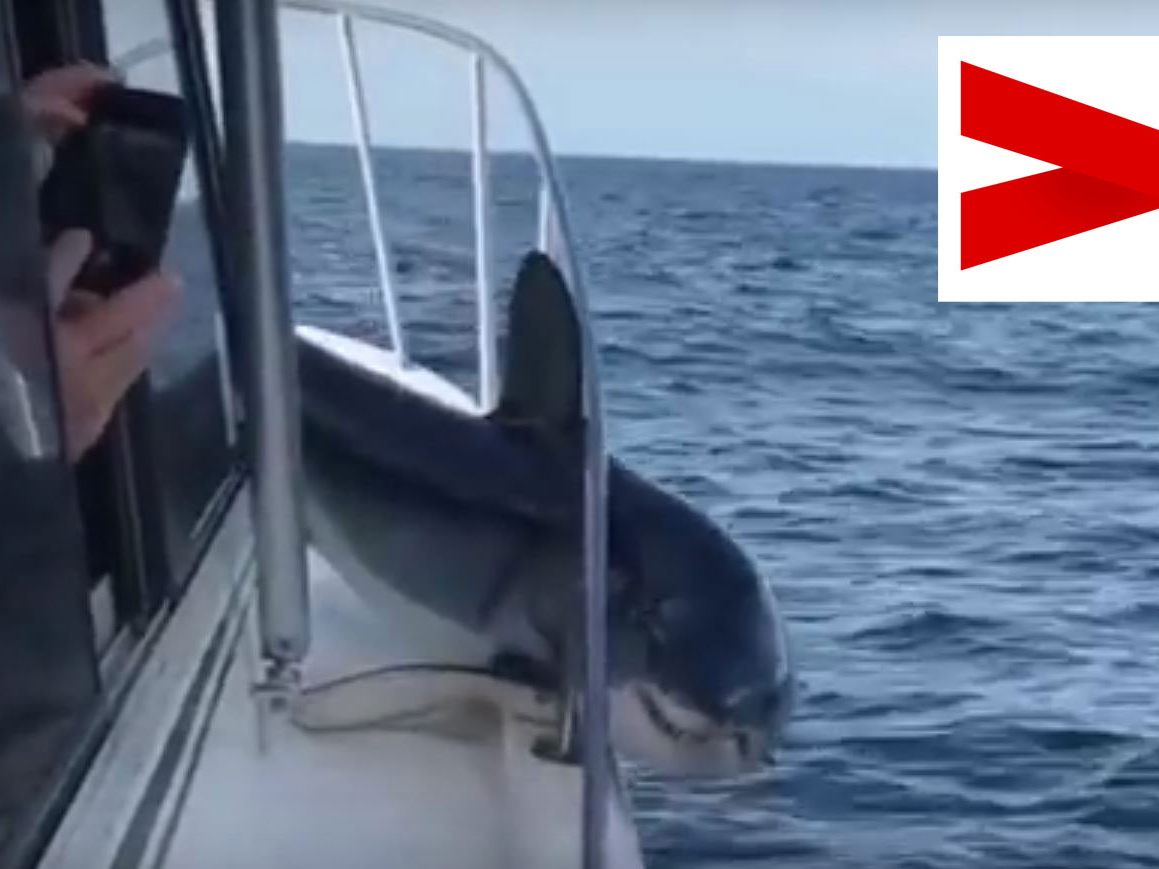 4.02.2018 Der Besatzung dieses Bootes dürfte diese Situation einen ganz schönen Schreck eingejagt haben, denn plötzlich springt ein Hai zu ihnen aufs Boot.